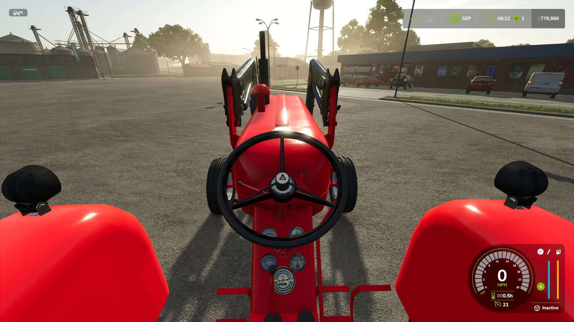 Praca w toku. Mamy nadzieję, że wkrótce ją zakończymy. Podstawowe funkcje działają w tej chwili. Normalny zaczep przyczepy działa. Trzypunktowy zaczep nie działa w tej chwili. Kierownica jest wciąż rozwijana, więc na razie ma swoje miejsce. Przednie koła się obracają, ale przednia oś jest wciąż rozwijana, więc obracają się, ale nie w 100% na osi, jak powinny.