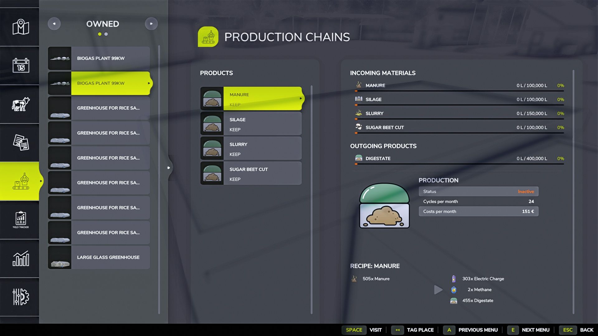 Pojemność: 100 000 l (obornik, kiszonka, buraki cięte), 150 000 l (gnojowica), 400 000 l (poferment)