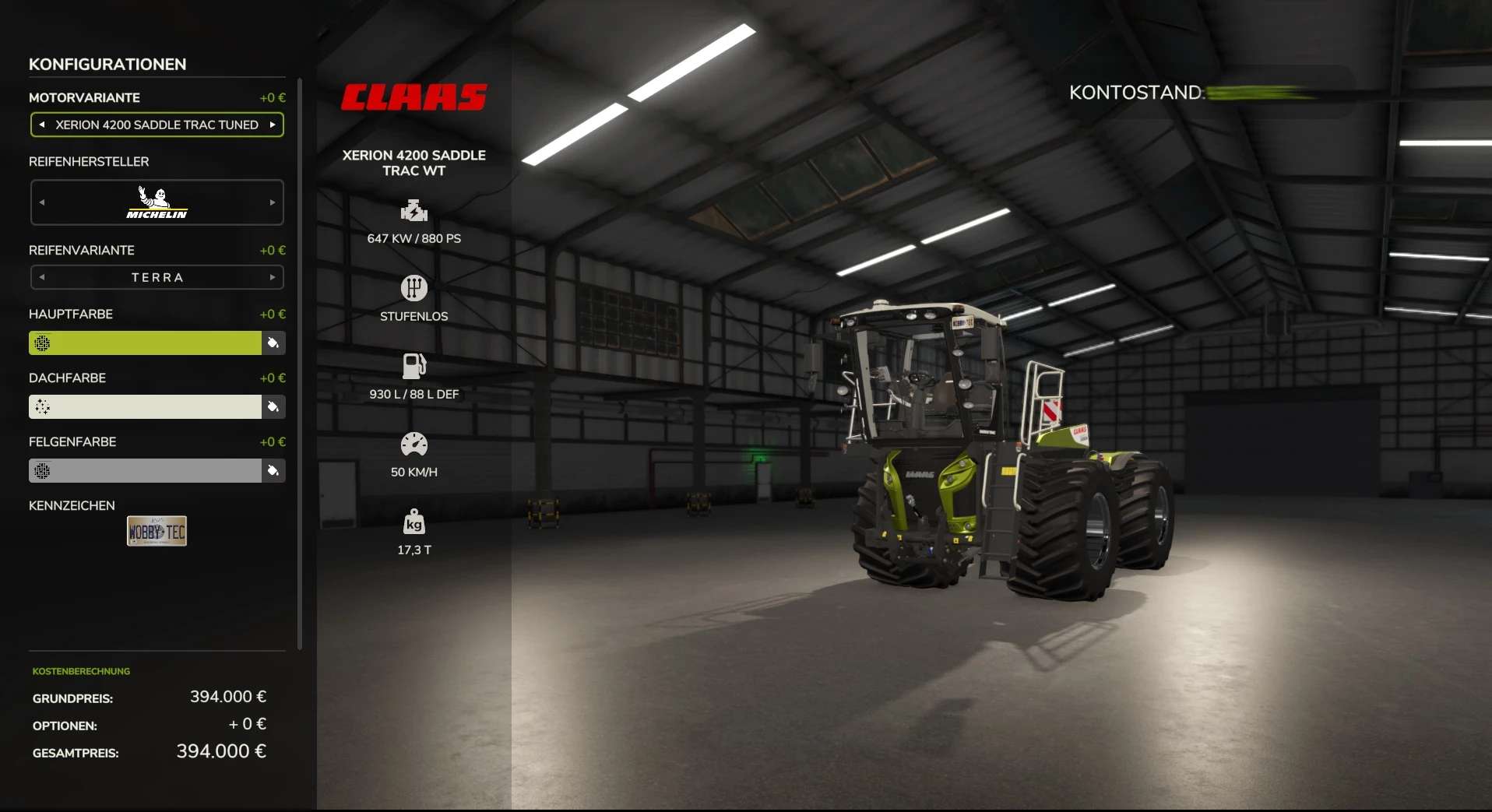 Wybór koloru dostosowany (Claas Grün Metallic jako jedyny domyślny kolor w kategorii metalicznej)