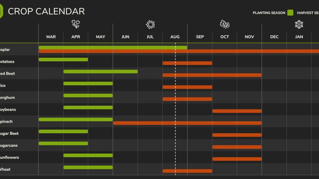 Niestandardowy kalendarz upraw (geograficzny) dostosowany do obszaru środkowego zachodu Ameryki.