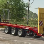 Przyczepa FC260CR do transportu ciągników gąsienicowych i bel – trzy osie i koła bliźniacze – ładowność całkowita 200 kwintali, waga 5900 kg – długość 9 m – szerokość 2,50 m – możliwość wyboru załadunku automatycznego lub ręcznego.