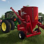 Na większości map jednym lub kilkoma składnikami do mieszania Total Mix Ration jest siano, kiszonka lub słoma. Zainstalowałem wyzwalacz ładowania bel na ślimaku załadowczym (widocznym na zrzucie ekranu), który umożliwia ładowanie z bel. MUSISZ wysunąć ślimak załadowczy za pomocą klawisza „open cover”, aby zobaczyć ilość materiału podczas ładowania. Bądź ostrożny, zbliżając się do bel. Każda bela, która wejdzie w tę strefę, rozpocznie ładowanie do mieszalnika niezależnie od położenia ślimaka.