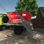 Możesz zmienić więcej kolorów. Obejmuje to nadbudowę kontenera, kontener, wywrotkę i wywrotkę silosu. W kontenerze można również przewozić winogrona. Koła mokną i brudzą się. Wystąpił problem z kolizją podpór, naprawiłem go tak, aby znikał i unosił się nisko.