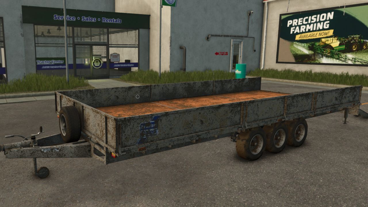 Do przyczepy dołączono dodatkowy element mocujący, dzięki czemu można ją używać z szeroką gamą pojazdów, w tym traktorami, pickupami i nowymi quadami DLC. Należy pamiętać, że ze względu na wagę przyczepy, quady mogą mieć problemy z jej transportem.