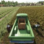 Opcjonalny mod pozwala na rozładowanie plonów na paletę z możliwością napełniania. Ziemniaki i niektóre warzywa są już dostępne w grze, dodałem brakujące.