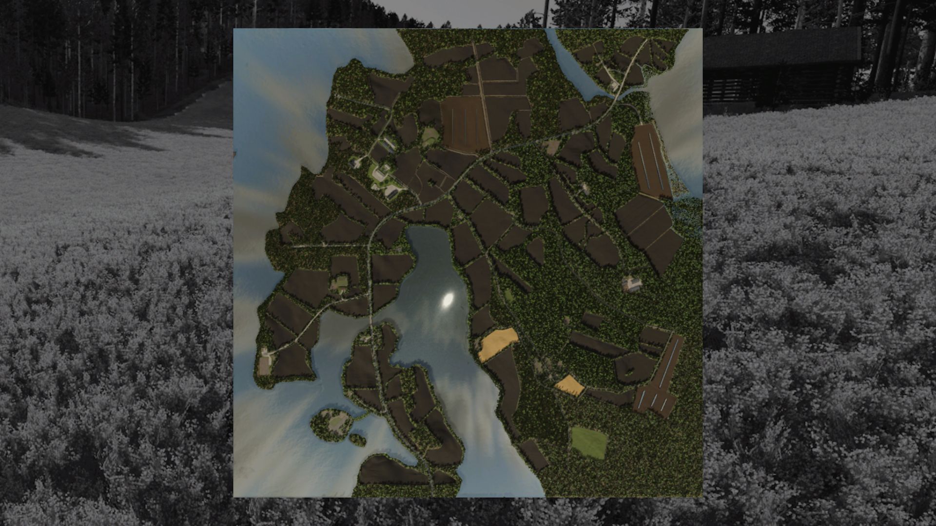Dużo obszarów leśnych, drzewa wykonane przez Inf Modding z FS22.