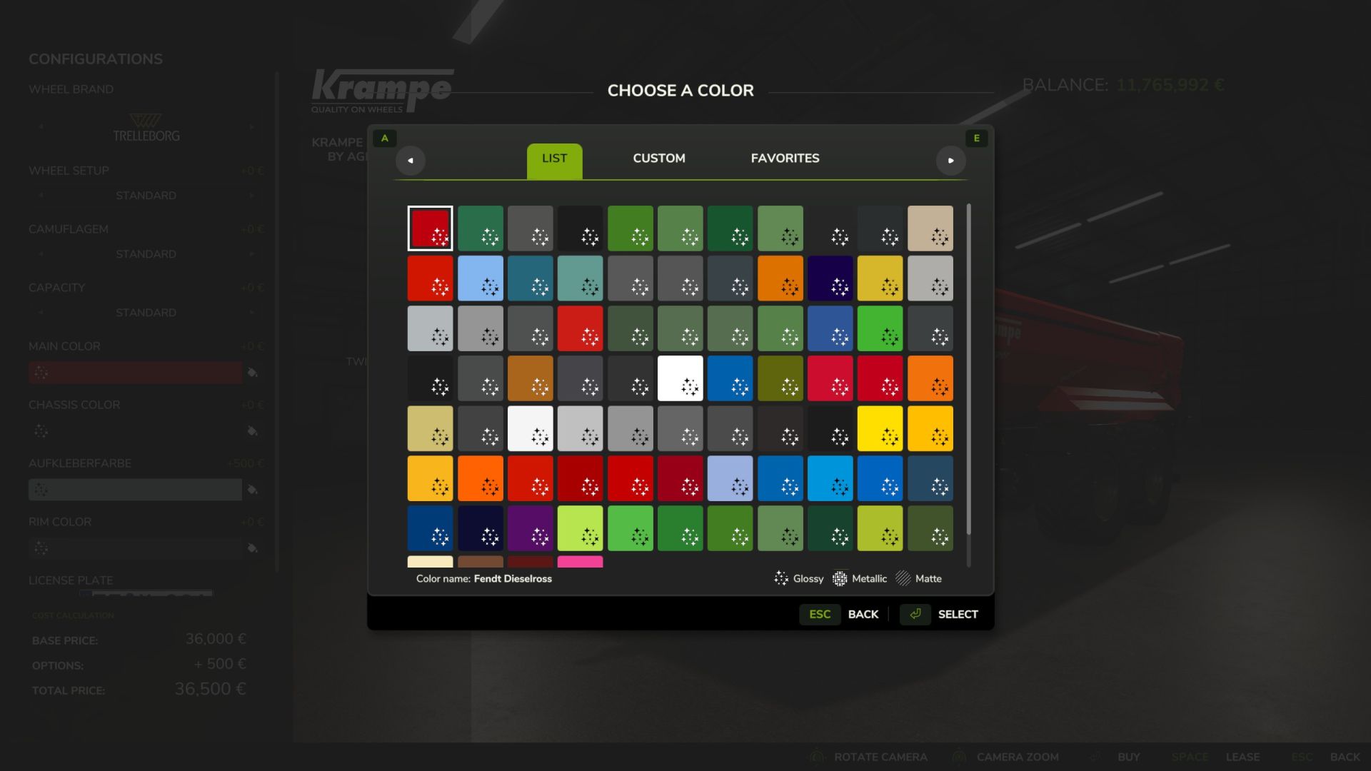 – Możliwość wyboru koloru podwozia