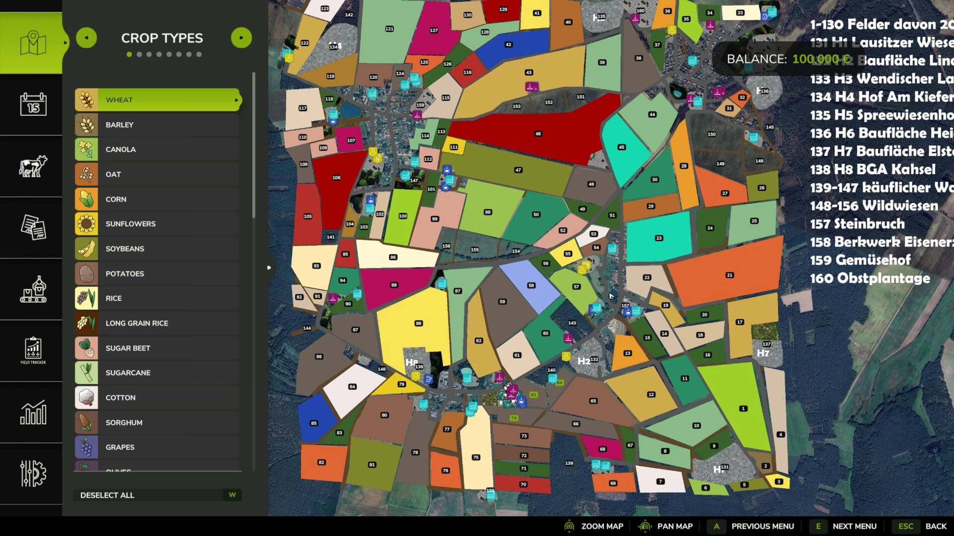 130 pól, w tym 20 łąk