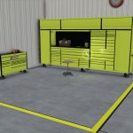 W obszarze roboczym możesz przechowywać plony, maszyny, palety i duże worki na półkach z AutoLoad, a także naprawiać, malować, personalizować lub sprzedawać pojazdy.
