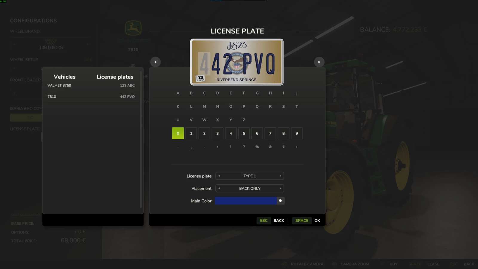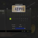 Wyświetla listę wszystkich posiadanych pojazdów i narzędzi w menu wyboru tablic rejestracyjnych.