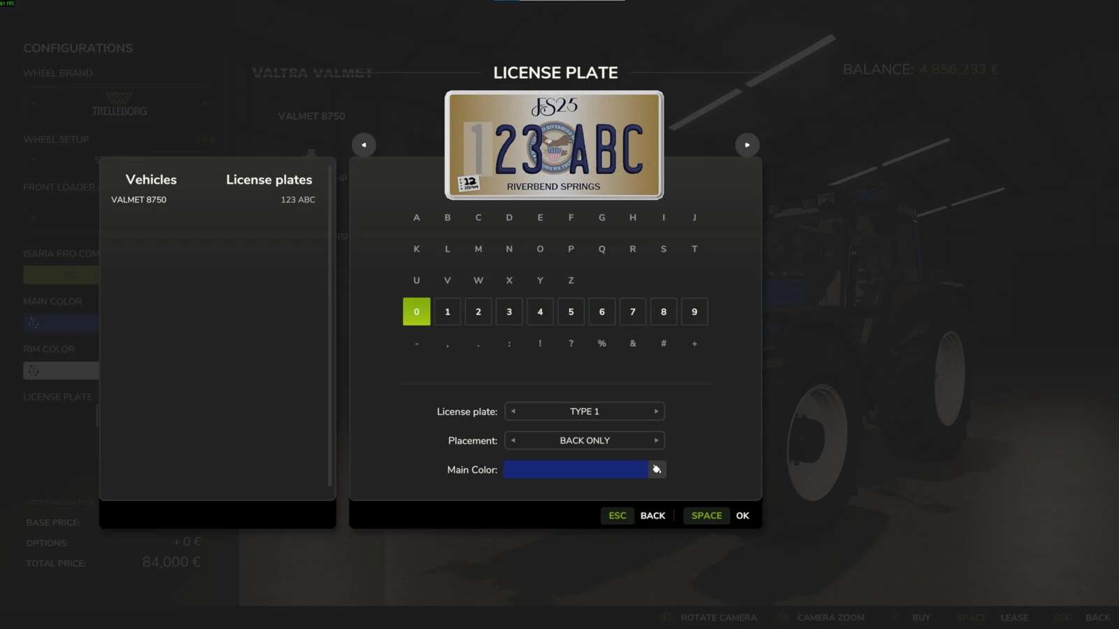 Wyświetla listę wszystkich posiadanych pojazdów i narzędzi w menu wyboru tablic rejestracyjnych.