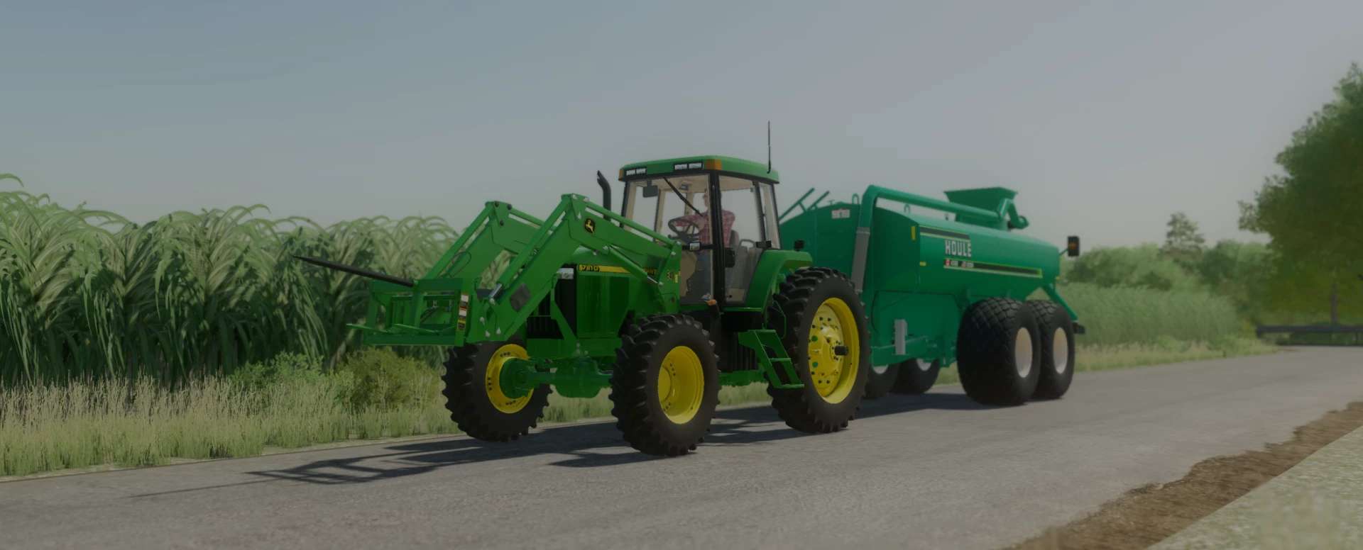 John Deere jest produktem Cornbelt Modding, ładowarka kołowa jest produktem JCL, a mapa należy do Stone Valley.