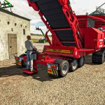 Taśmociąg niszczarki umożliwi wyładowanie rozdrobnionych produktów do przyczepy lub bezpośrednio na ziemię, korzystając z komendy „Rozładuj tutaj” w grze.