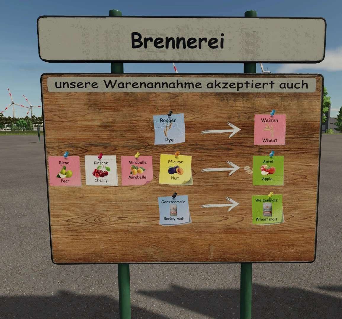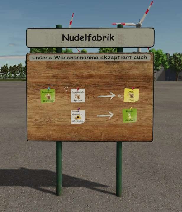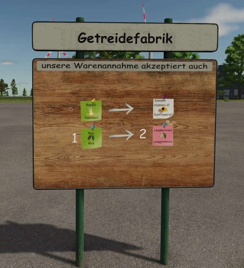 Znaki wizualnie objaśniające zainstalowane konwertery. Znaki znajdują się w menu drzewa w sekcji Dekoracje i posiadają opcję wyboru projektu, która określa, dla której produkcji wyświetlany jest konwerter. Jeśli nie podano żadnych liczb, wymiana jest dokonywana w stosunku 1:1; w przeciwnym razie wymiana jest dokonywana w określonym stosunku. Aby umieścić znaki w obiektach produkcyjnych, należy włączyć opcję swobodnego rozmieszczania, w przeciwnym razie zbudowana fabryka zablokuje przestrzeń. Ta pierwsza wersja jest przeznaczona dla pakietu produkcyjnego FED 2.1.0.0. W przypadku dodania nowych konwerterów w późniejszych wersjach, znaki zostaną dostosowane i zaktualizowane.