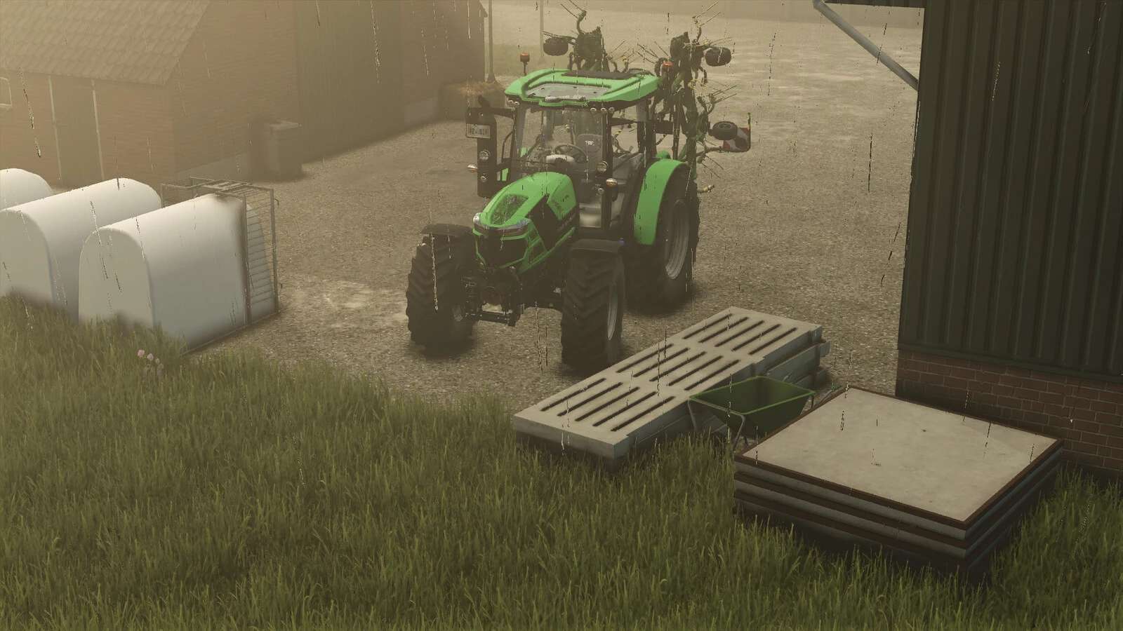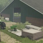 Zawiera 2 cielęce igloo, 1 taczkę, węże do gnojowicy, zestaw kół oraz betonowe/rdzewne detale.