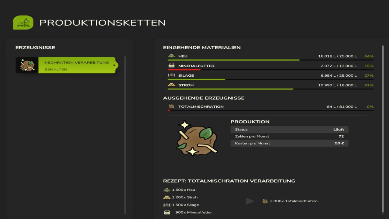 Ponadto w produkcji paszy dla krów (TMR) kiszonka, siano, słoma mogą być również podawane w postaci okrągłych lub prostopadłościennych balotów, a pasza mineralna w postaci palet.