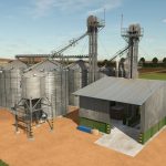 Pakiet z dwoma średniej wielkości silosami, każdy o innej pojemności, idealny do przechowywania produktów. Ściany stodoły można dostosować do indywidualnych potrzeb, z opcją odsłoniętej cegły lub okładziny betonowej. Kolor betonu można zmienić, tak jak w przypadku stodół w grze.