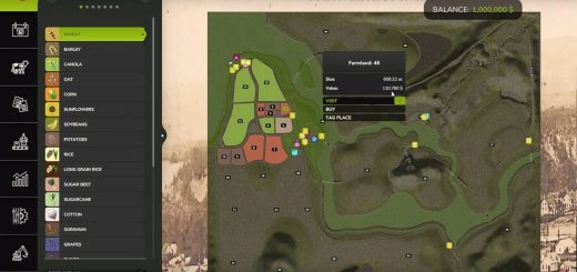 Kilka działek, na których można stworzyć własne farmy lub umieścić fabryki (w sumie 9) (na mapie nie ma żadnych fabryk, zostawiam to Twojej wyobraźni).