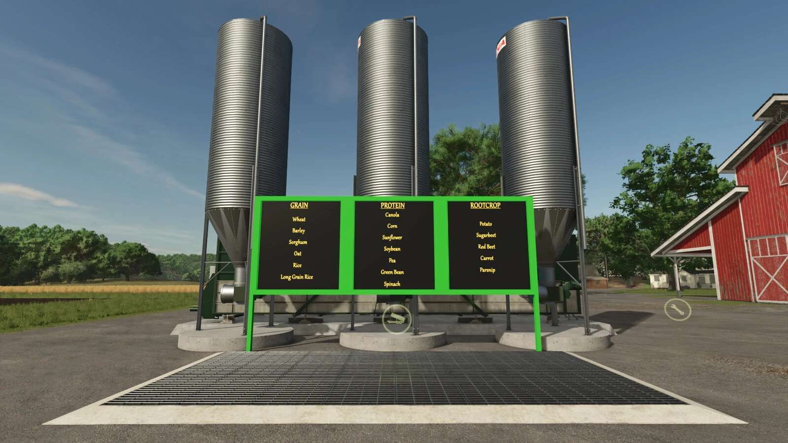 Zamień dowolną uprawę podstawową na karmę dla świń. Wszystkie uprawy są podzielone na 3 kategorie: zboża, białka i rośliny okopowe.