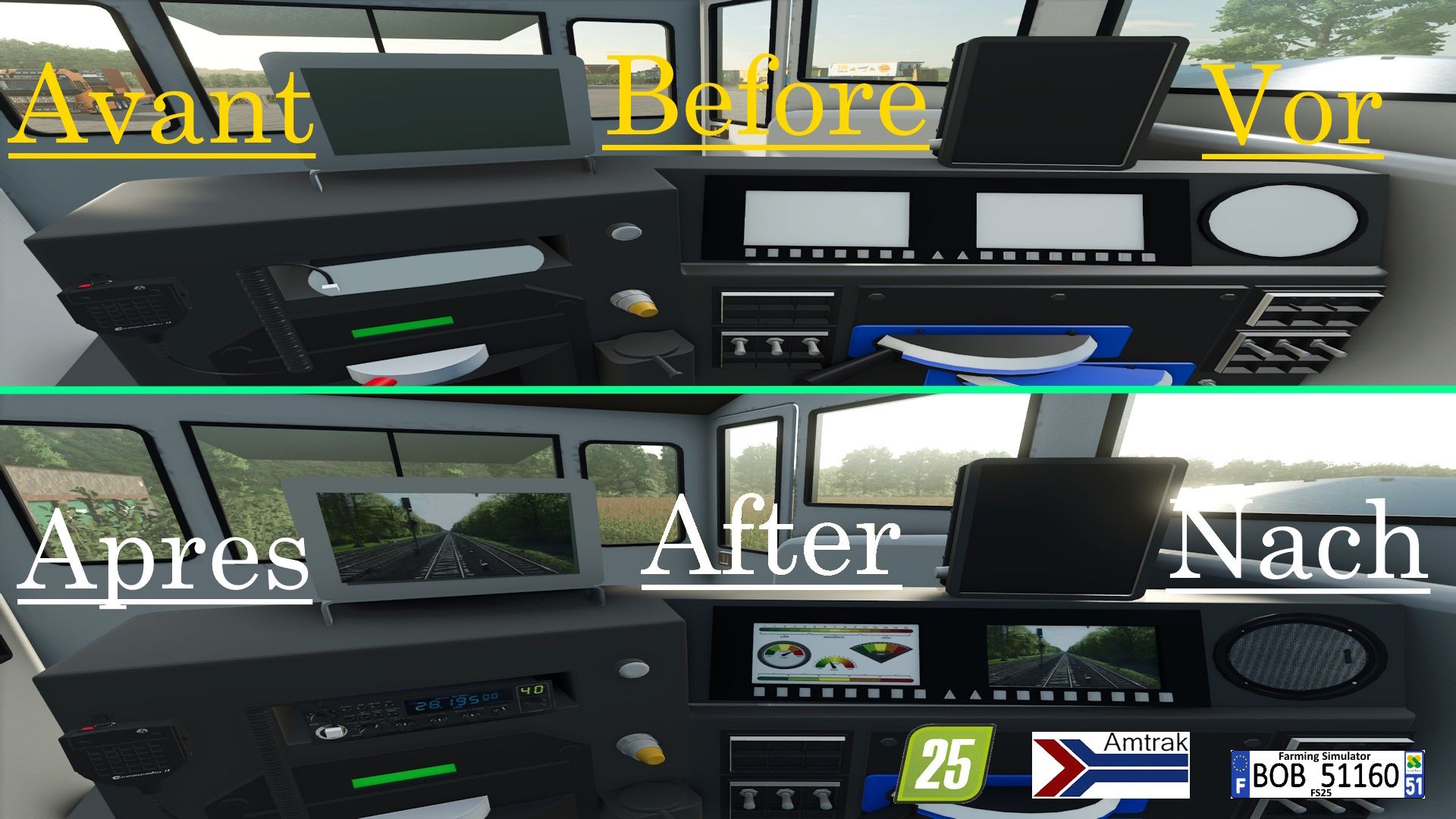 Witam wszystkich, dziś zamieszczam mod do FS25 ZCA Trains, który powstał na wersji Zcaalocket. Można wybrać 11 Diesel o pojemności 2000 L / 3000 L, dodać: 9 Gyrophares, 4 gaśnice i recenzję La Cabin & Plus, aby uzyskać więcej informacji, zobacz powyższe zdjęcia, dziękuję i życzę wszystkim dobrej gry.