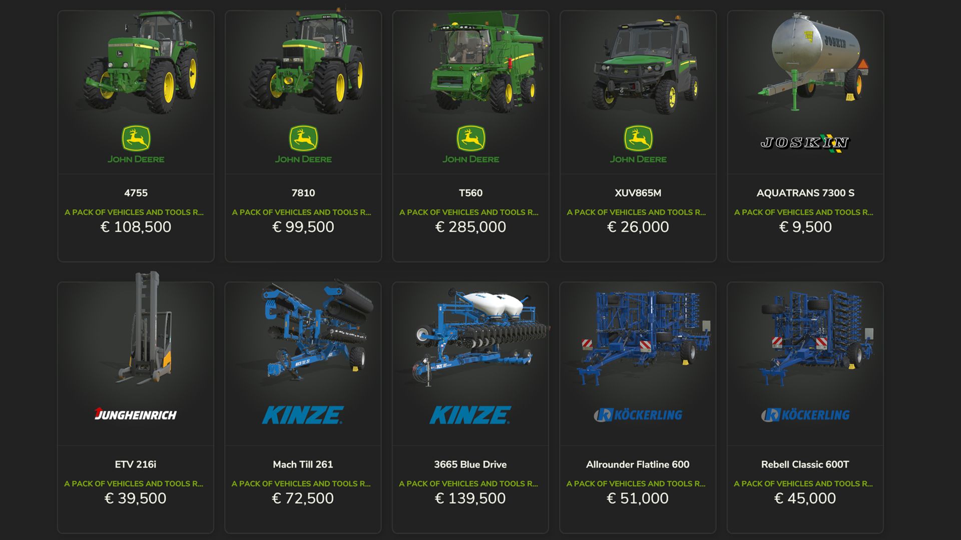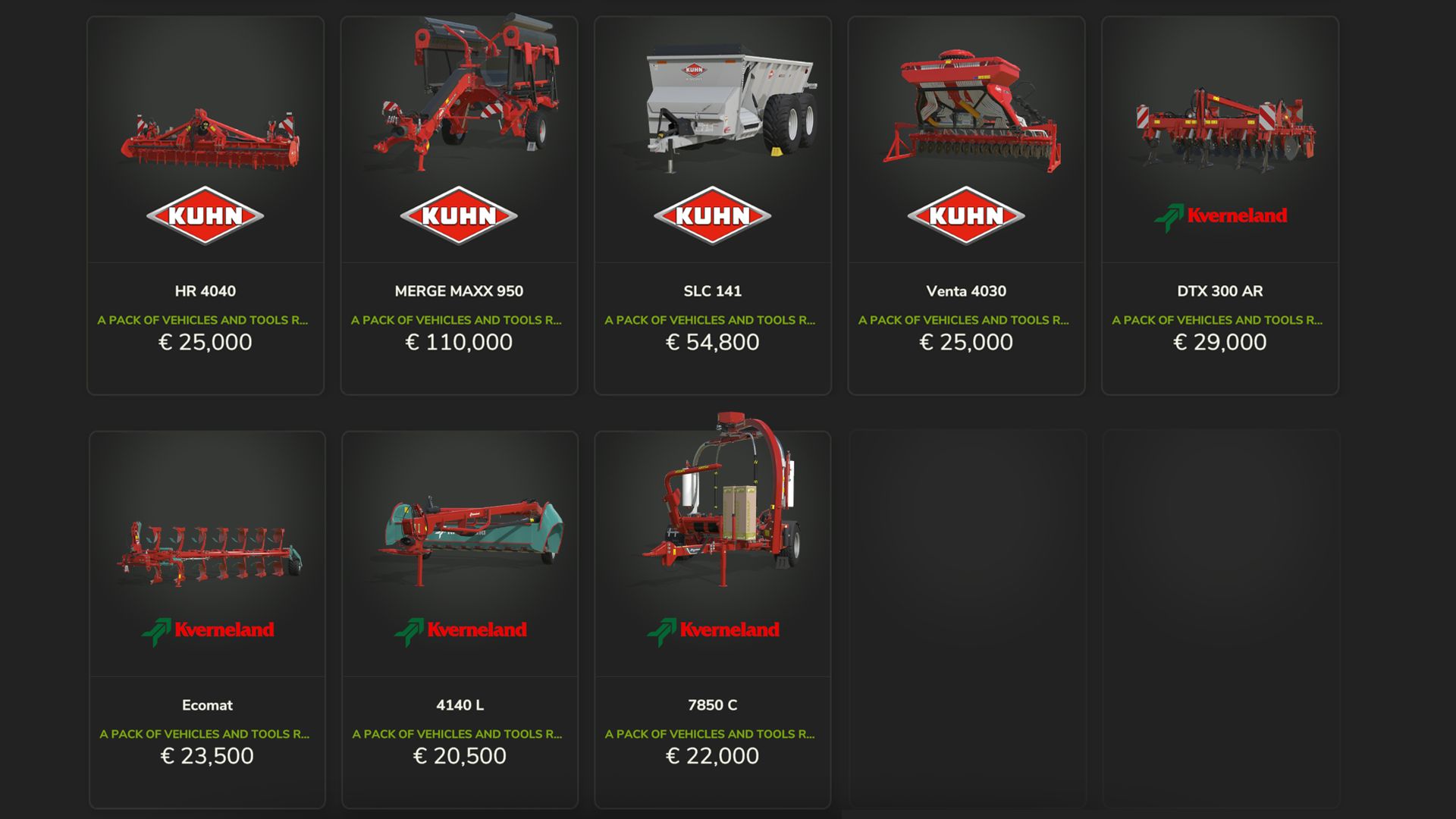 Kuhn-dc401, ga15131, gf8712, gmd4411, hr4040, mergeMaxx950, slc141, venta4030,