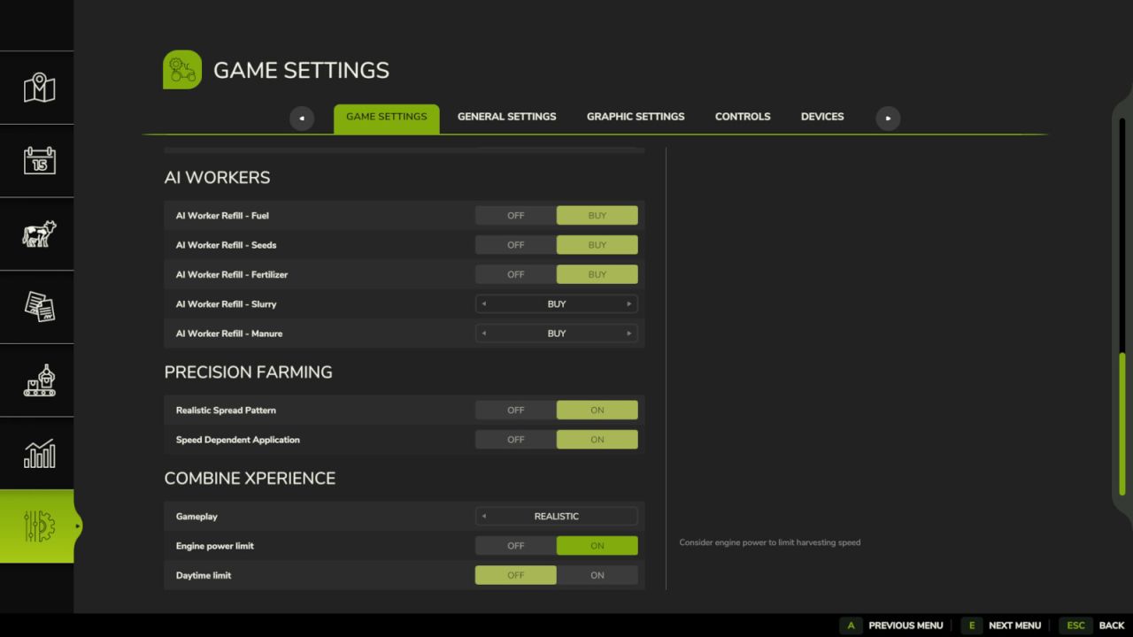 W ustawieniach gry dostępne są specjalne ustawienia umożliwiające włączanie/wyłączanie określonych zachowań dla Twojej wygody. Konkretne parametry, takie jak położenie HUD, można dostosować w pliku combineXP.xml znajdującym się w modSettings.