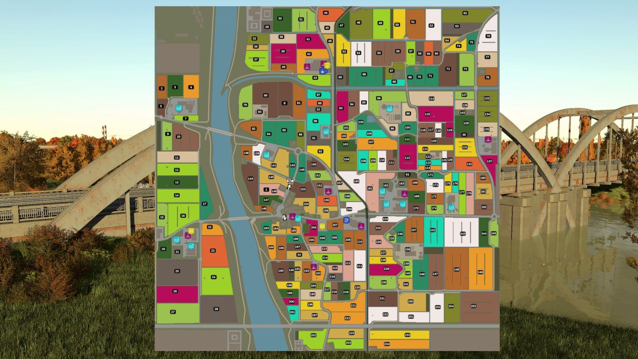 – Teren rolniczy nr 1 to obszar wokół rzeki i głównej drogi (gra umieszcza numer terenu rolniczego w pobliżu pola nr 146), kup go za 0$, aby kosić trawę w tych obszarach