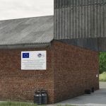 Zestaw 2 tablic Programu Rozwoju Obszarów Wiejskich w 6 różnych rozmiarach, powszechnie spotykanych w polskich oborach.