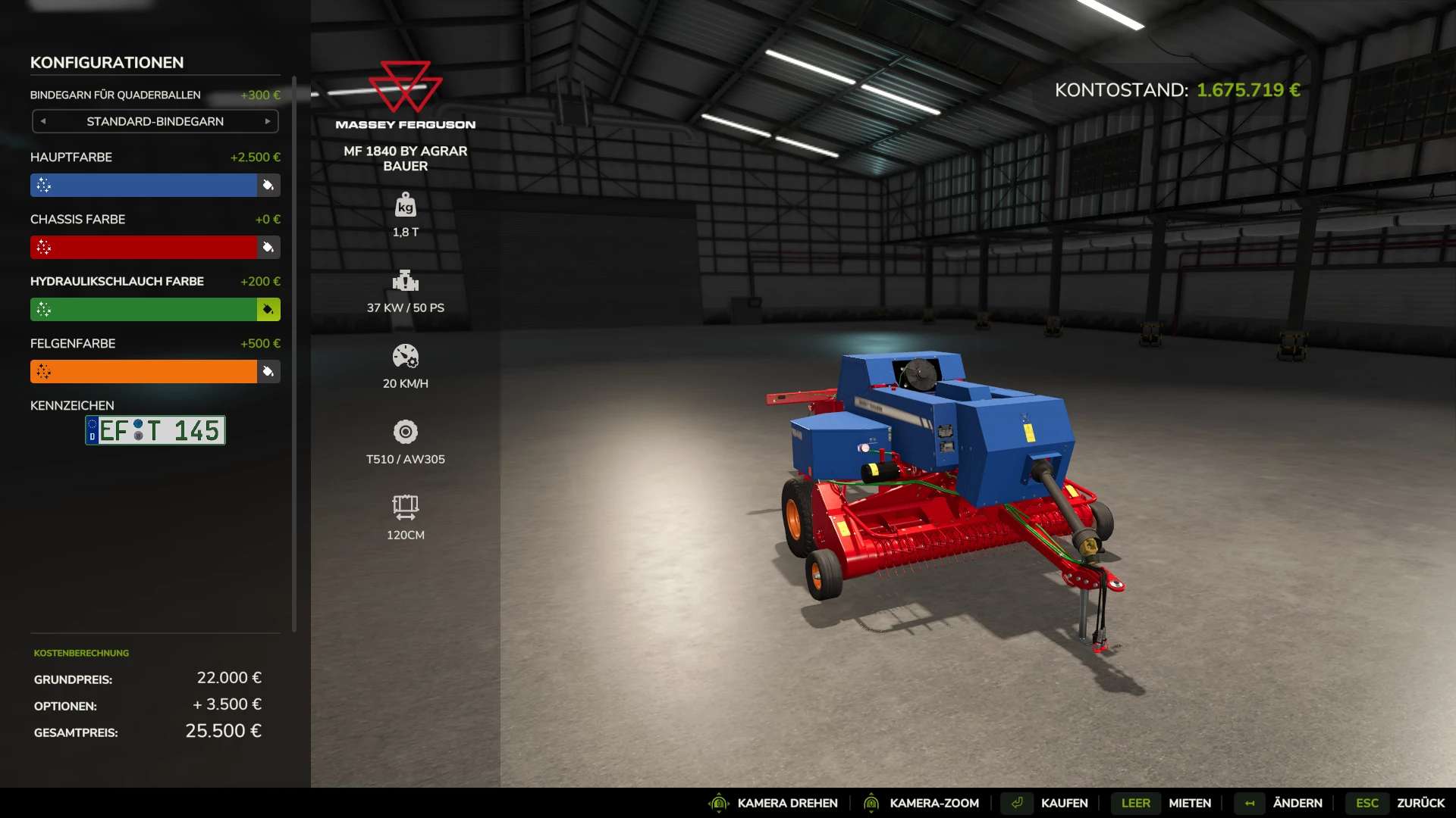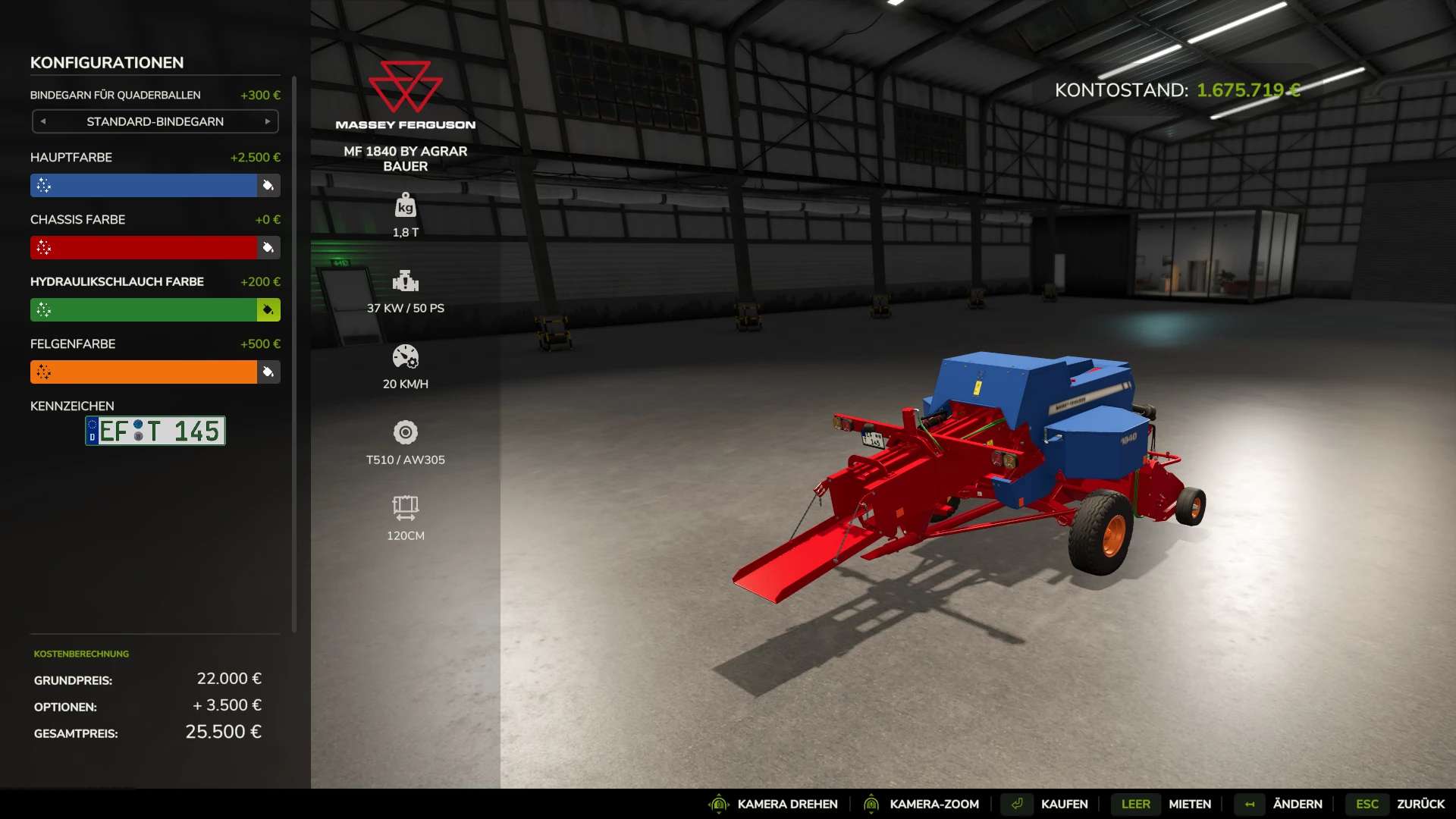 Oferuję Państwu moją prasę Massey Ferguson 1840 HD z możliwością wyboru koloru.