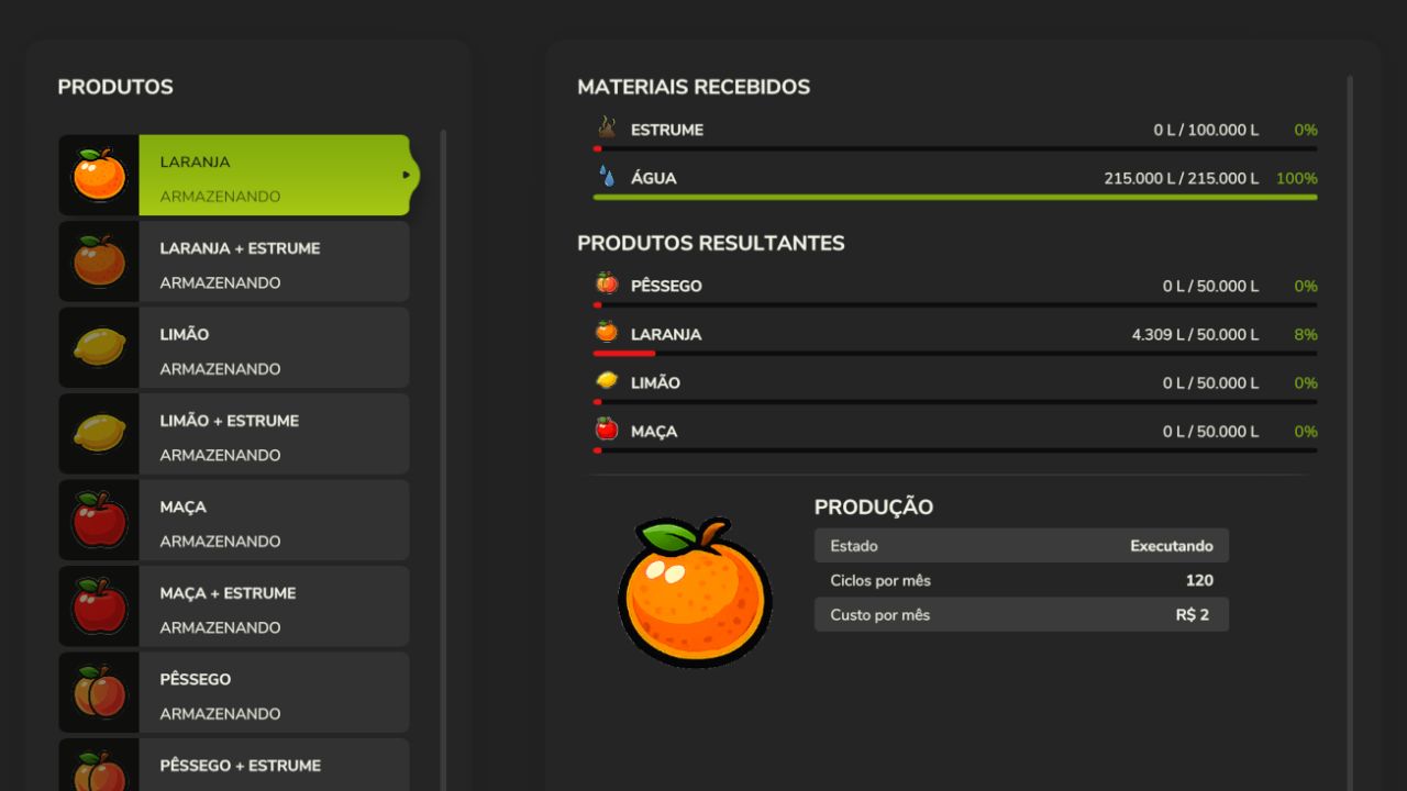 Uprawiaj owoce w sadach owocowych lub na drzewach owocowych, produkując jabłka, pomarańcze, cytryny i brzoskwinie. Aby zmaksymalizować wydajność, możesz również użyć obornika, zwiększając produktywność produkcji.