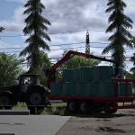 Przyczepa do przewozu bel z dźwigiem