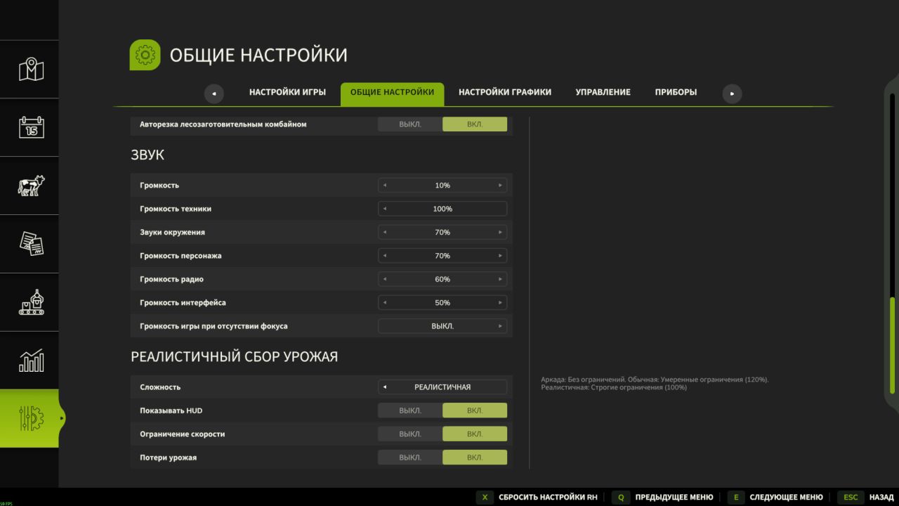 Realistyczne: Dla fanów symulacji. Prędkość jest ściśle ograniczona przez fizyczną pojemność kombajnu.