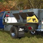 Rozsiewacz soli montowany na przyczepie siodłowej. Rozsypuje sól, aby usunąć drobne warstwy śniegu. Sól nie działa na głębszym śniegu.