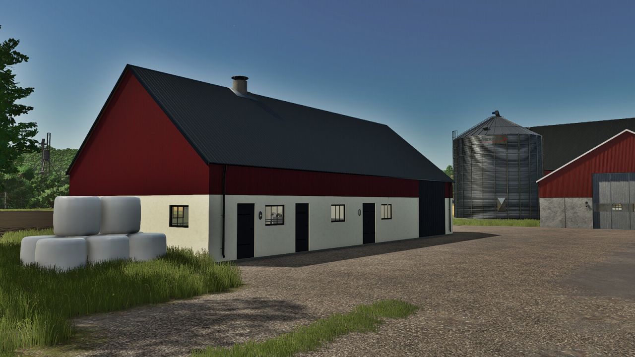 Typowa szwedzka obora, w której mieszczą się 22 zwierzęta. Istnieją dwie wersje budynku: jedna z otynkowaną fasadą, a druga z cegły. Możliwa jest również instalacja paneli słonecznych na dachu.