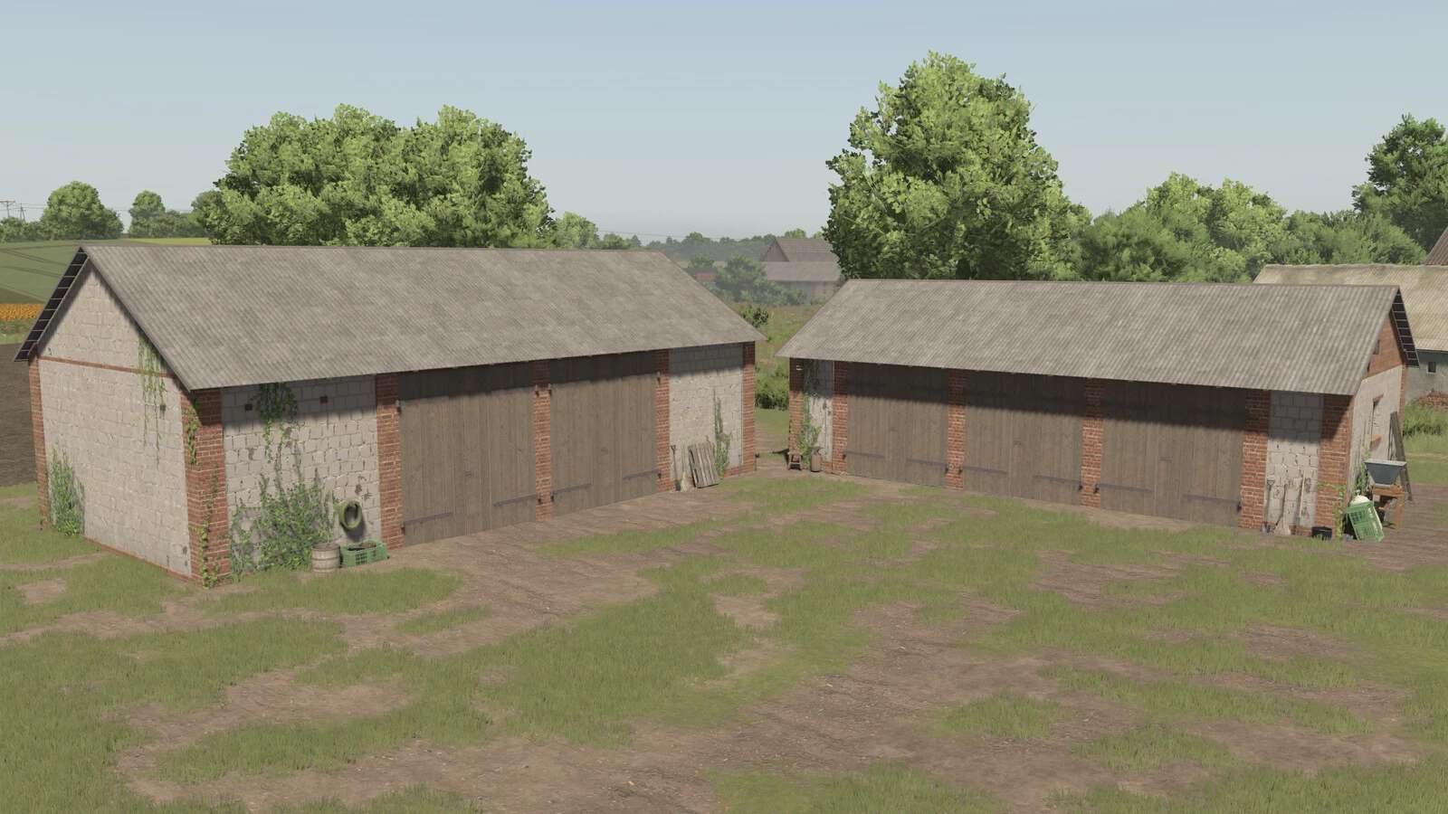 W zestawie znajdują się dwa budynki w stylu polskim, wykonane z czerwonej cegły i białych bloków. Idealny dodatek do małych i średnich gospodarstw.