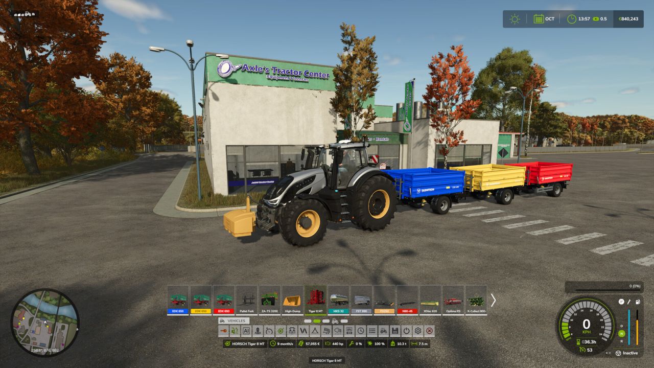 – Do ekranu informacji o pojeździe/narzędziu dodano wiele nowych szczegółów, w tym potrzebną moc, poziom napełnienia/pojemność, masę i szerokość roboczą.