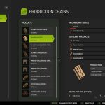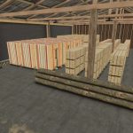 Tartak, który może przyjmować zarówno drewno, jak i zrębki do produkcji towarów. Palety są układane w stosy. Tartak przyjmuje zrębki luzem, w belach i na paletach, a także kłody. Receptury dla wszystkich produktów obejmują opcję zrębków i drewna.