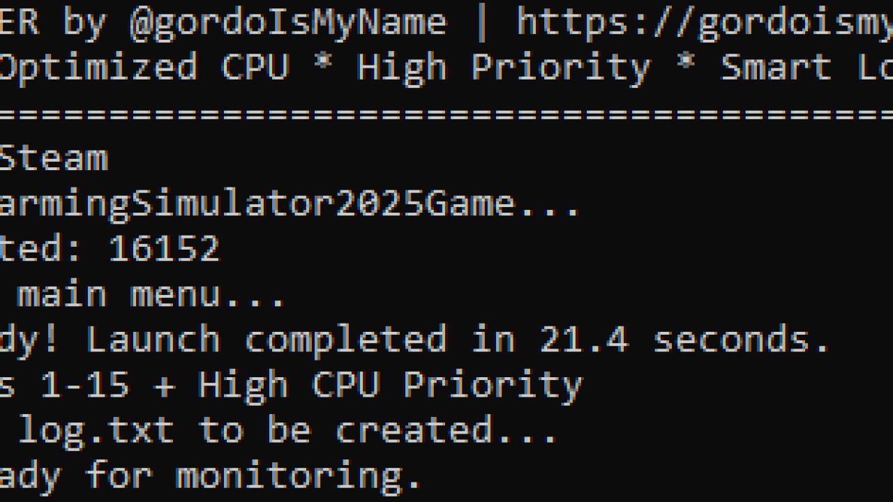 Ten skrypt jest niesamowity, ponieważ wykonuje wszystko, czego system Windows i sama gra nie robią automatycznie — uruchamia Farming Simulator 25 w najczystszy i najbardziej zoptymalizowany pod kątem wydajności sposób, a także monitoruje stan gry.