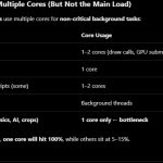 Sugeruje to, że ważne części silnika (np. symulacja, aktualizacja obiektów, logika odległości rysowania) nie są w pełni równoległe.
