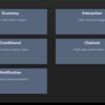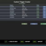 Korzystając z prostego kreatora w grze, możesz tworzyć wyzwalacze dla takich czynności, jak kupowanie lub sprzedawanie przedmiotów, uiszczanie opłat, wyświetlanie powiadomień, uruchamianie wydarzeń lub tworzenie wieloetapowych łańcuchów wyzwalaczy. Wszystko konfiguruje się z prostego menu otwieranego klawiszem F8.