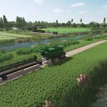 Mapa 4x w Brandenburgii (na północny zachód od Rhinow). Prawdziwy teren, fikcyjne wioski i drogi (nie jest to odwzorowanie 1:1). 112 pól (1,4–53 ha), tereny leśne, kilka gospodarstw rolnych oraz zintegrowane i dowolnie rozmieszczane zakłady produkcyjne. Ścieżki i drogi polne można kupić za pośrednictwem Farmland 113. Modder: FrankSt