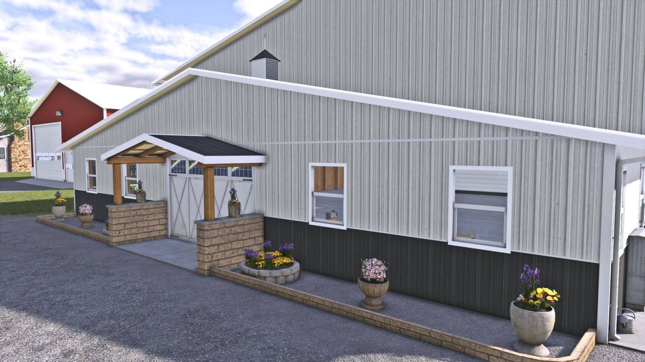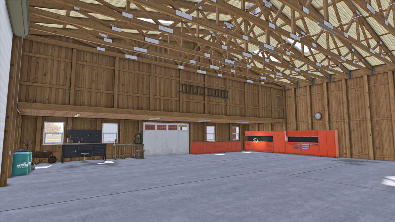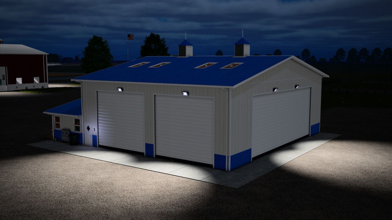 Tutaj możesz przechowywać zboże lub pojazdy. Posiada oświetlenie wewnątrz i na zewnątrz.