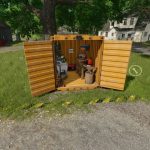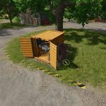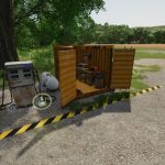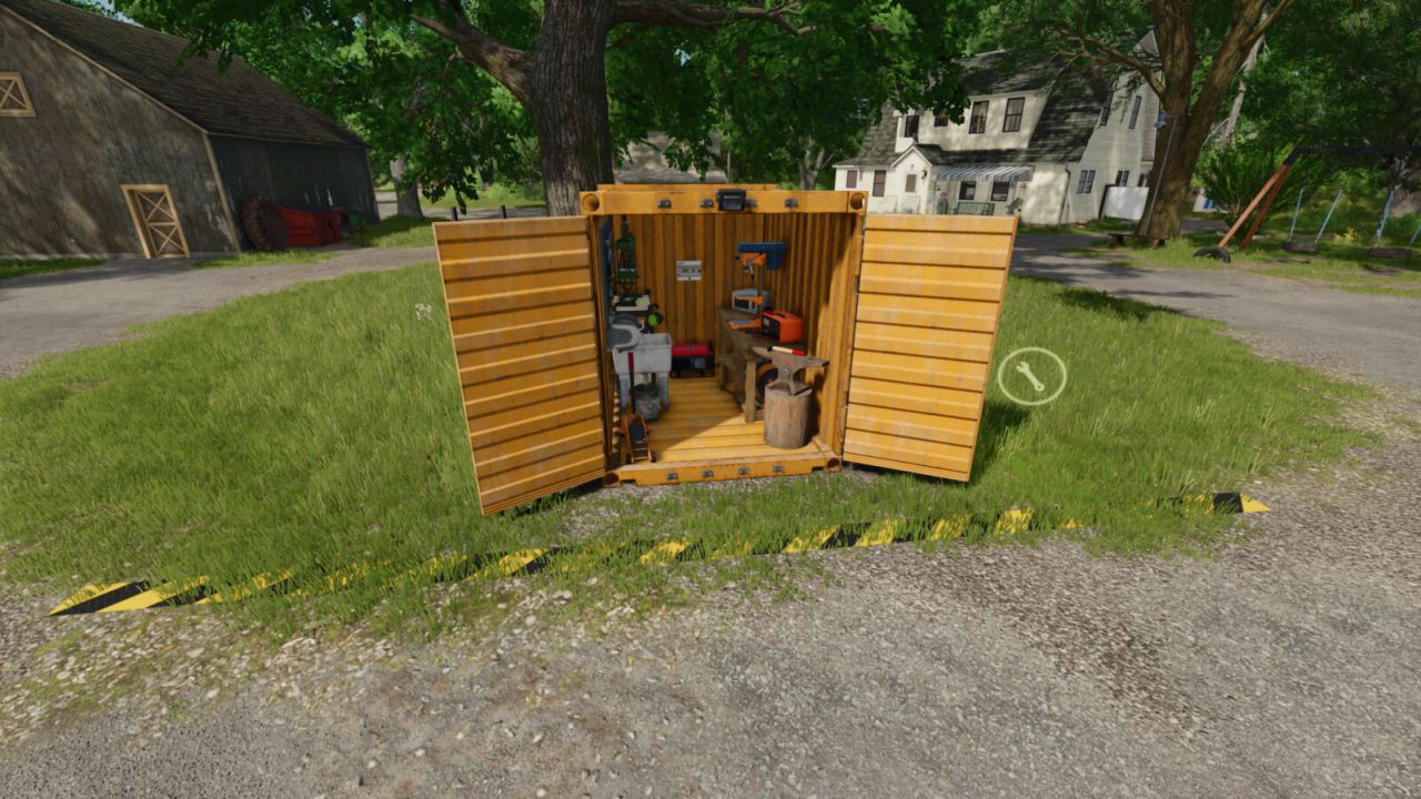 Mały warsztat dla Twojej farmy. Napraw, pomaluj i sprzedaj dowolny pojazd lub sprzęt. Opcje paneli słonecznych do umieszczenia. Są dwie wersje, jedna ze stacją tankowania i jedna bez.