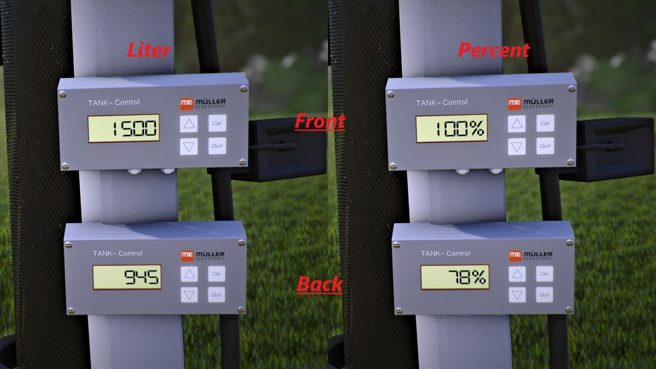 Prefabrykowany wyświetlacz ME Mueller Elektronik wyświetla poziom napełnienia dołączonych narzędzi lub przyczep w pojeździe. Instrukcję instalacji można znaleźć w tym pliku (prefabDesc.xml).