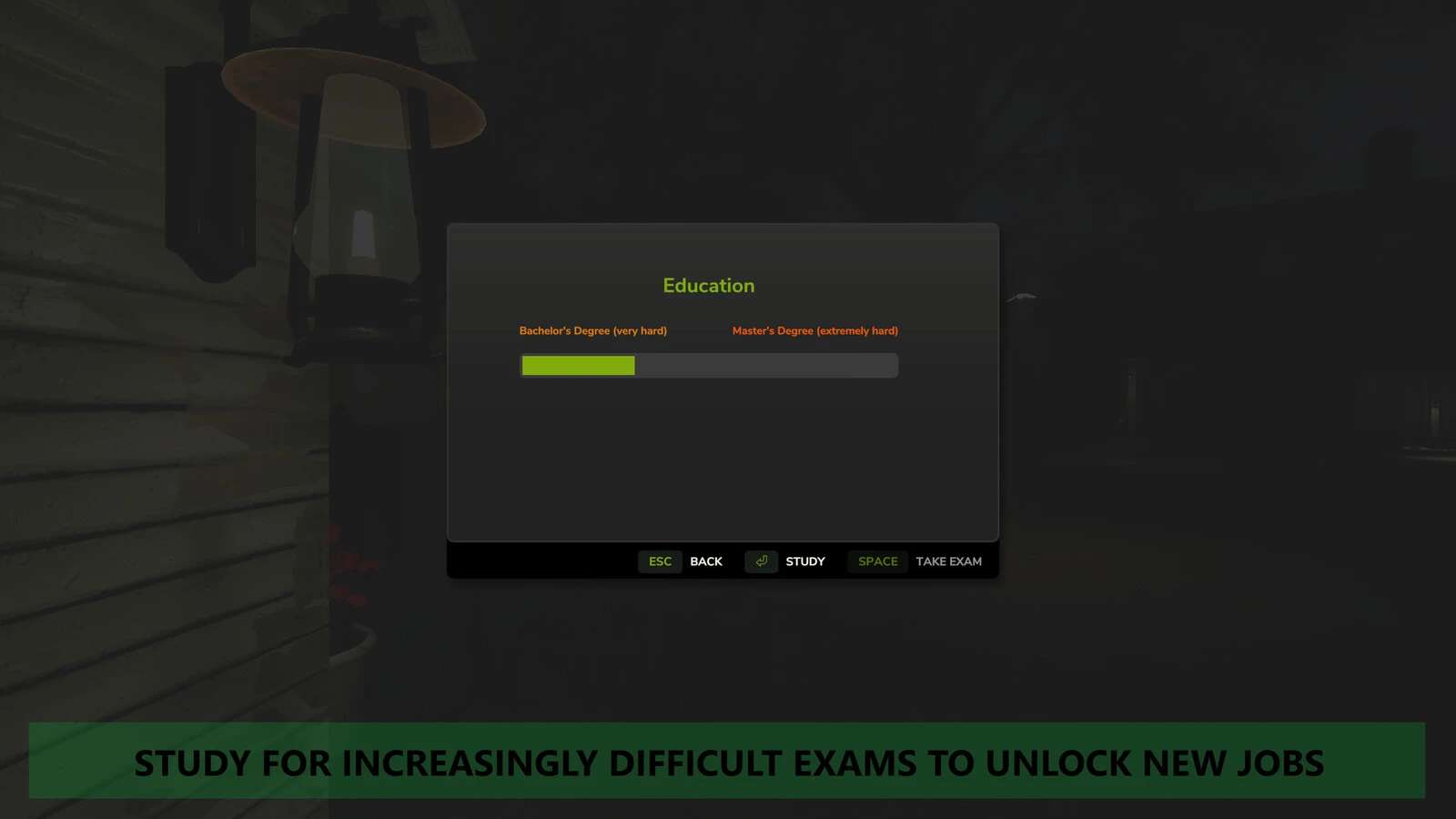 – osiągnąć kolejny poziom wykształcenia, aby odblokować nowe miejsca pracy z dużo lepszymi zarobkami