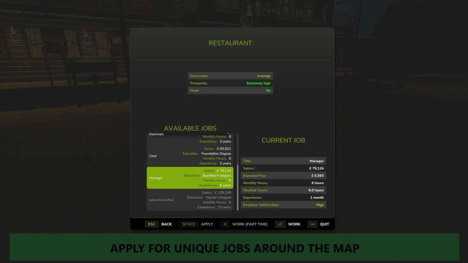 — zdobywaj doświadczenie przez lata, odblokowując nowe stanowiska z lepszymi pensjami i mniejszą liczbą godzin
